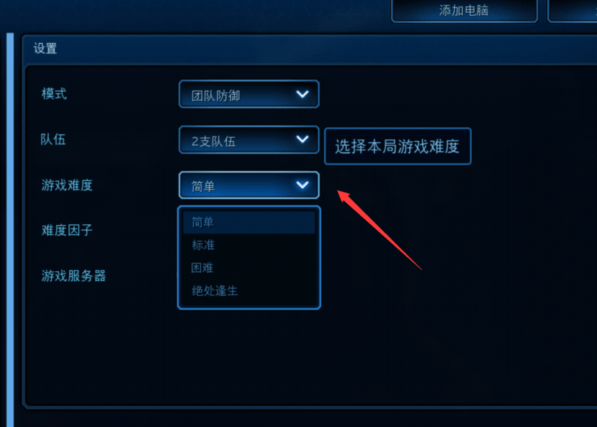 ——进入房间之后优先选择游戏模式,然后选择难度,默认游戏模式为团队防御。在团队防御这个模式下难度共分为4个等级 简单 标准 困难 绝处逢生4个游戏难度依次递增。在突袭模式下,难度锁定为困难,无法更改。在挑战模式下,难度锁定为绝处逢生,无法更改。