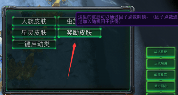 然后点击红色箭头对应按钮进入奖励皮肤界面即可选取皮肤。注意:奖励皮肤为一次性且只在本局生效,如果因子不多的小伙伴切记不要开启。因子比较珍贵,前期建议不要使用奖励皮肤。