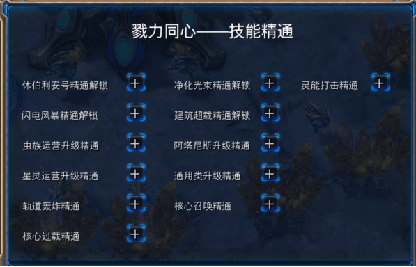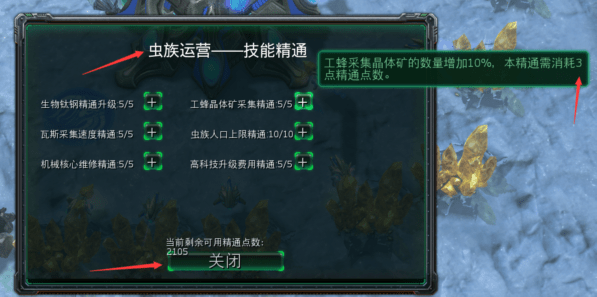 ——精通是你每一次通关游戏之后获得的奖励点数,用来强化人(T)神(P)虫(Z) 3族的基础能力(运营,兵种,面板等等)