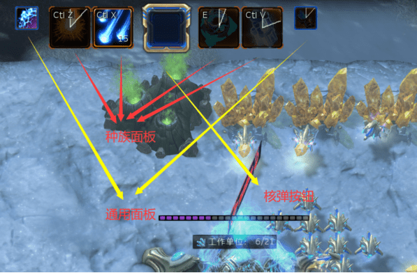 ——面板的作用分成3种:辅助运营,紧急救场,定点打击。不同种族的种族面板会不一样,但是通用面板和核弹按钮是不会变的。